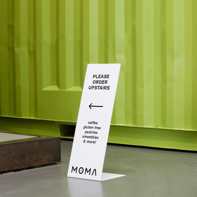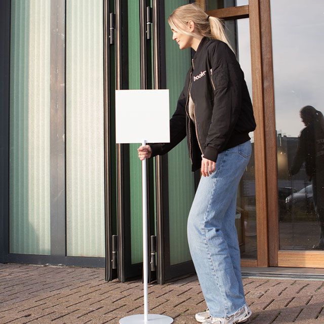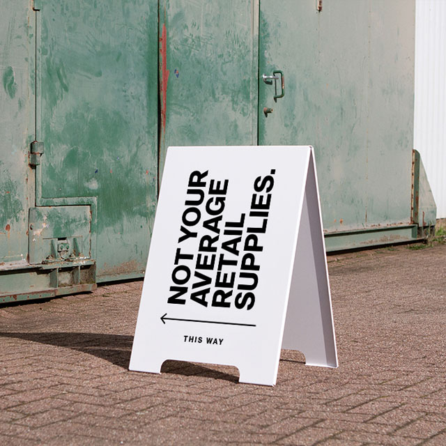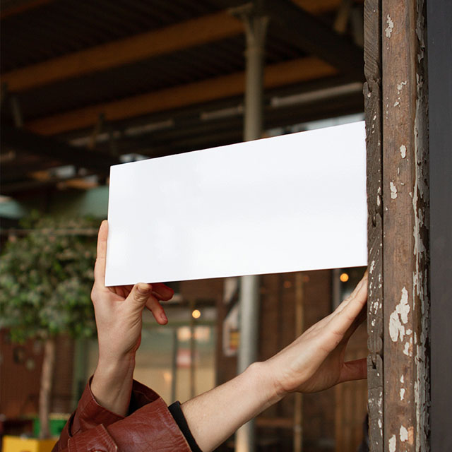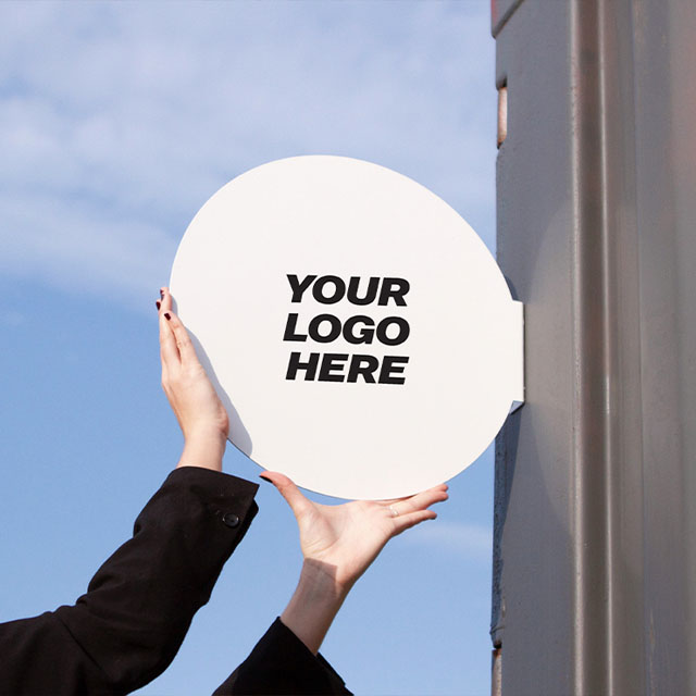 Signage made to last. Powder-coated metal on any color you want, delivered with your branded stickers to be easily installed in less than 10 minutes on your business’ wall. Make your storefront stand out with well-designed signage.