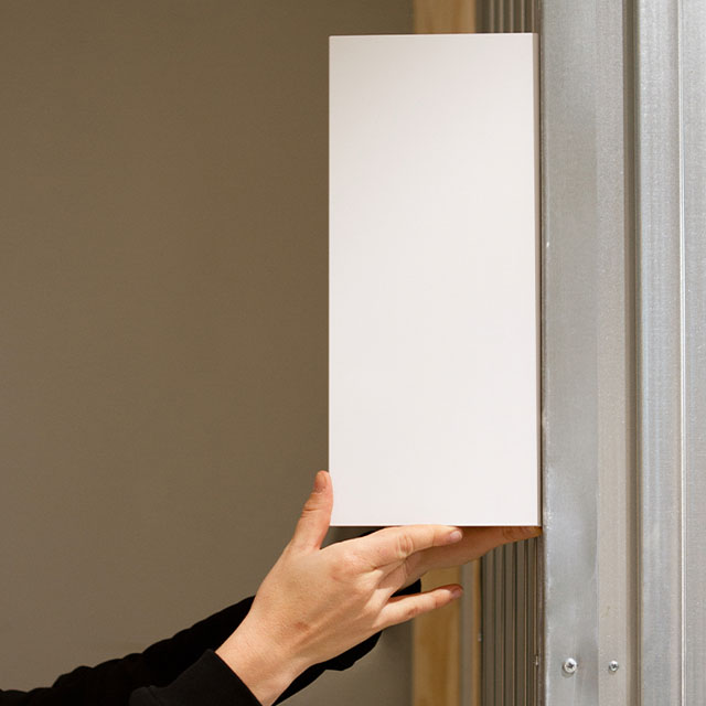 - Optional: send us your logo or your what you wish to communicate and receive your vinyl stickers with your order. Apply before installing it on the wall.